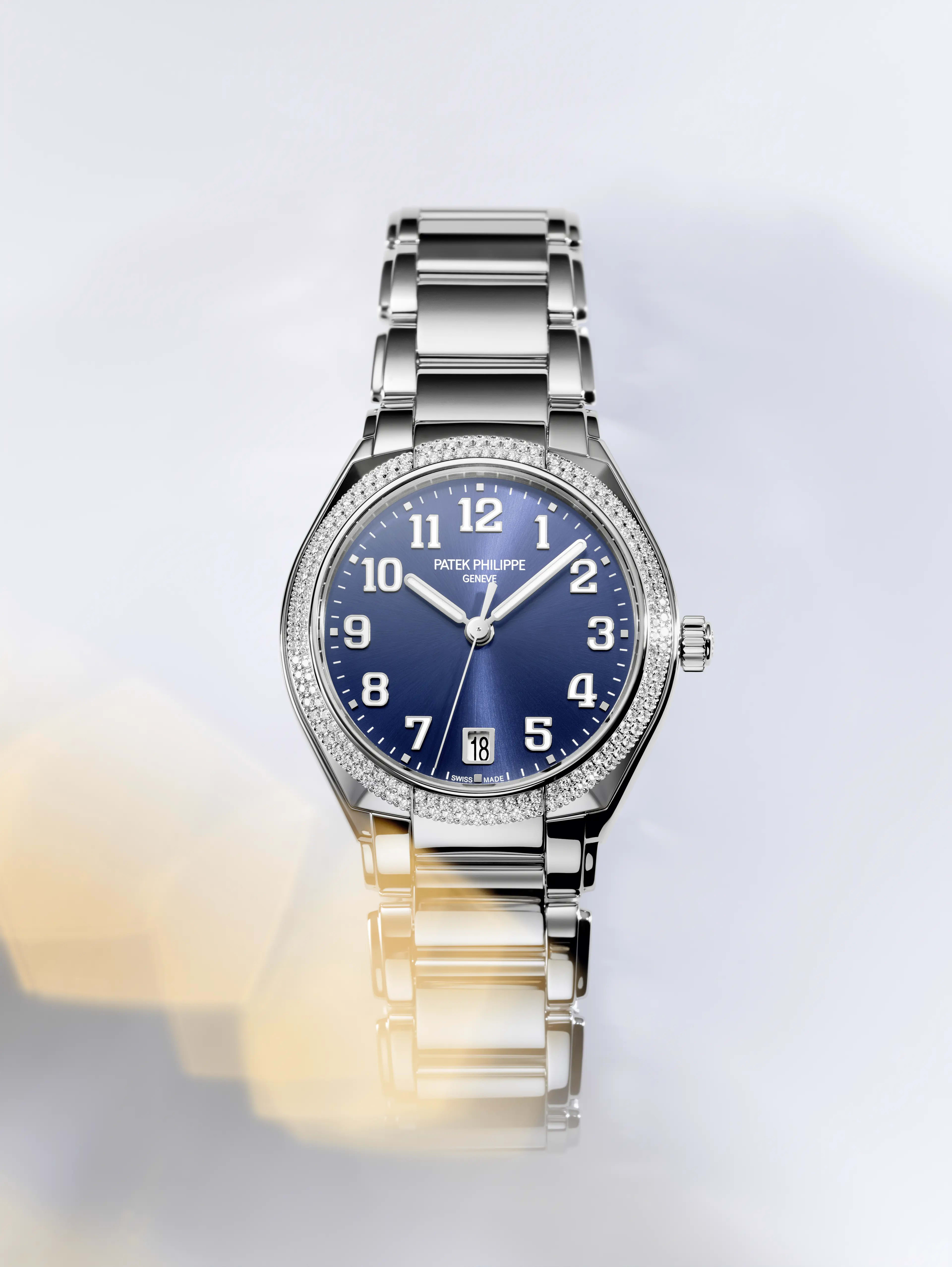 Launched in 1999 as Patek Philippe’s first exclusively feminine watch collection, the original Twenty~4 model features an Art-Deco-inspired “manchette” or cuff design. The double-shafted cambered case follows the contours of the wrist smoothly and comfortably. Every model combines charm, style and simplicity.